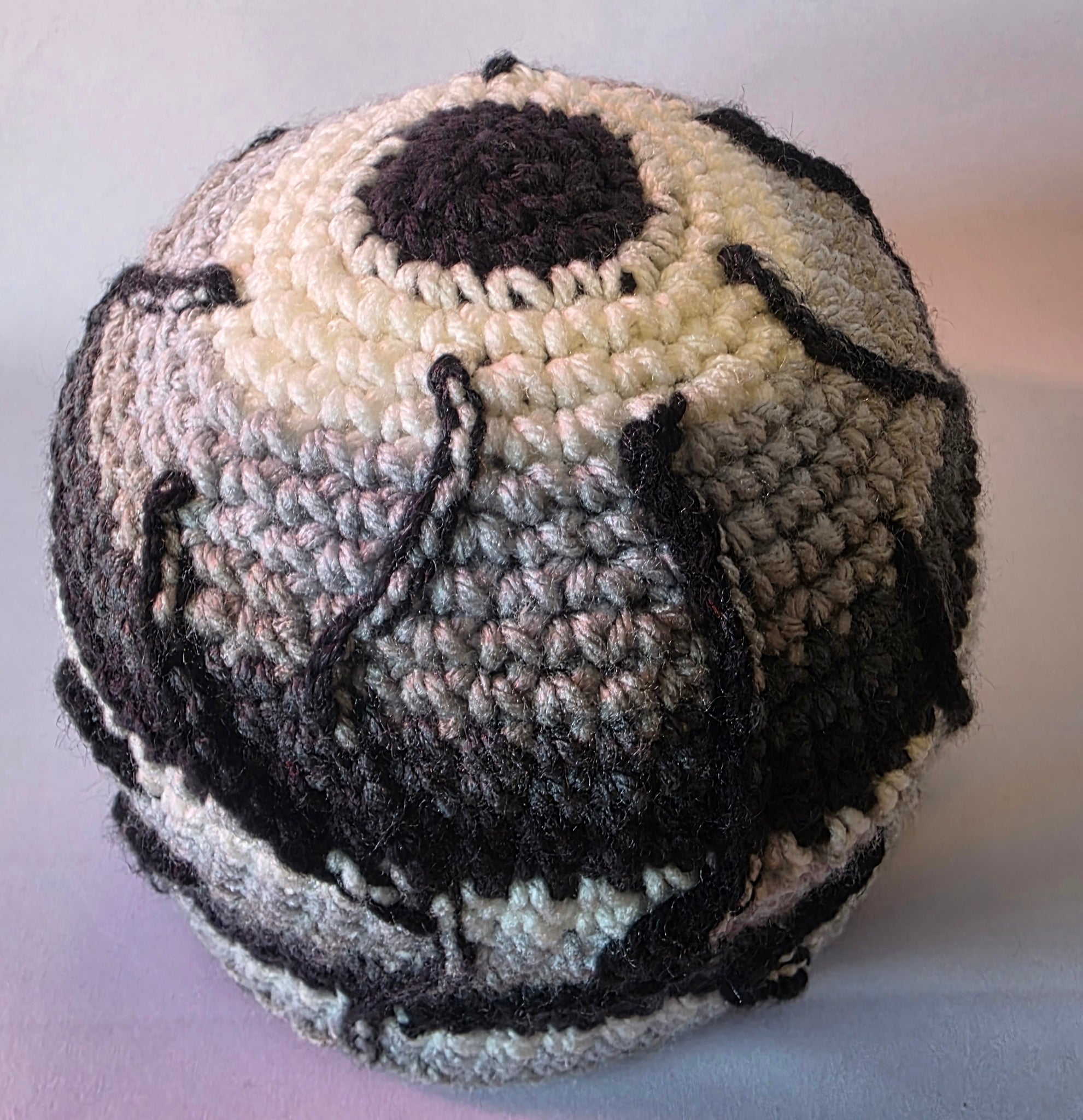 This sweet camo beanie is hand made with black, white, and grey for the ultimate versatile hunting hat. It has 3-D crocheted tree branches over the top. It's so sick, I'm having a hard time not adding it to my own collection.